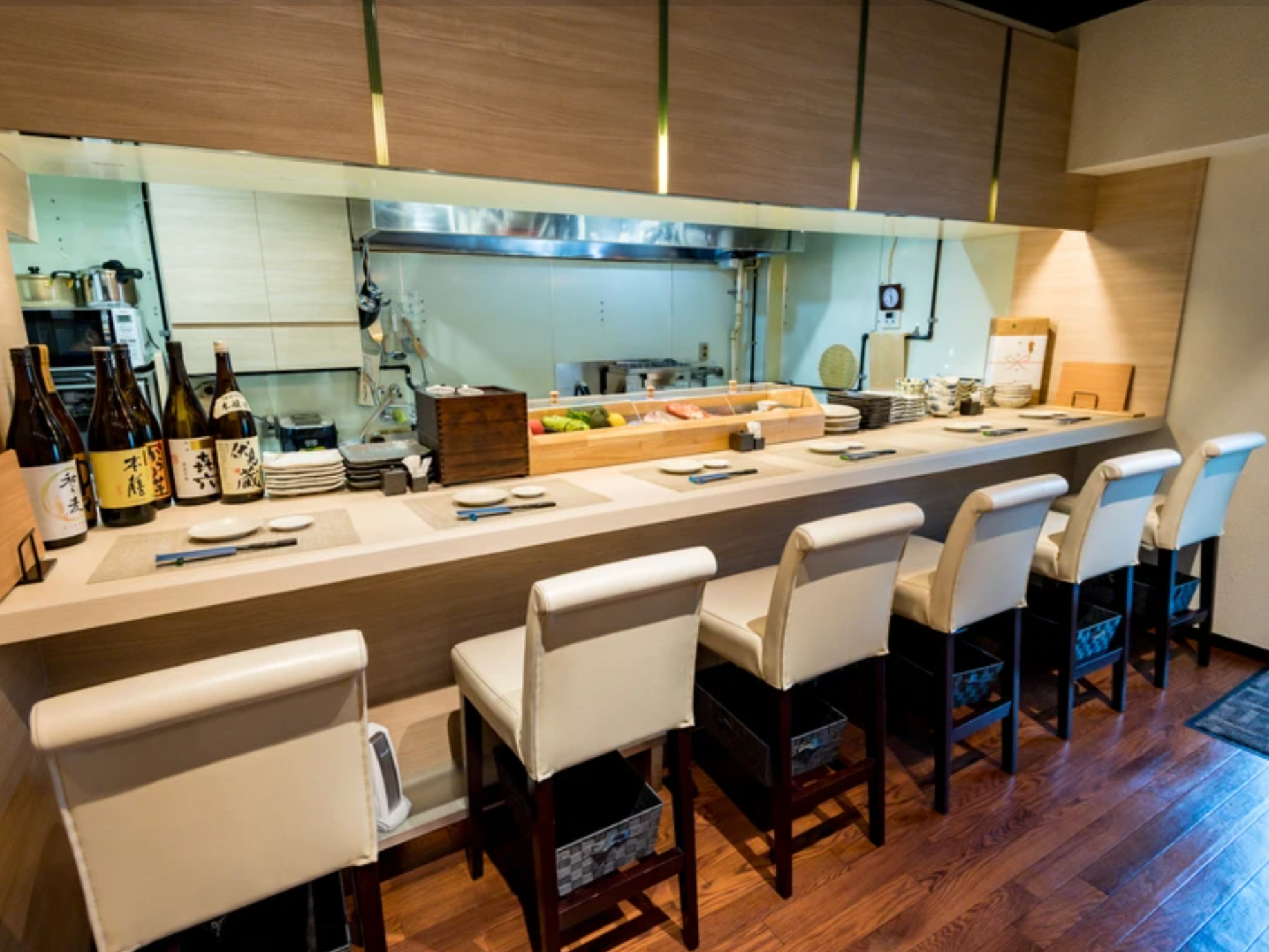ネタケースや職人の目の前で楽しめるカウンター席が6席ございます!お一人様でもお楽しみいただける当日ご予約可能のコースもご用意しております。
