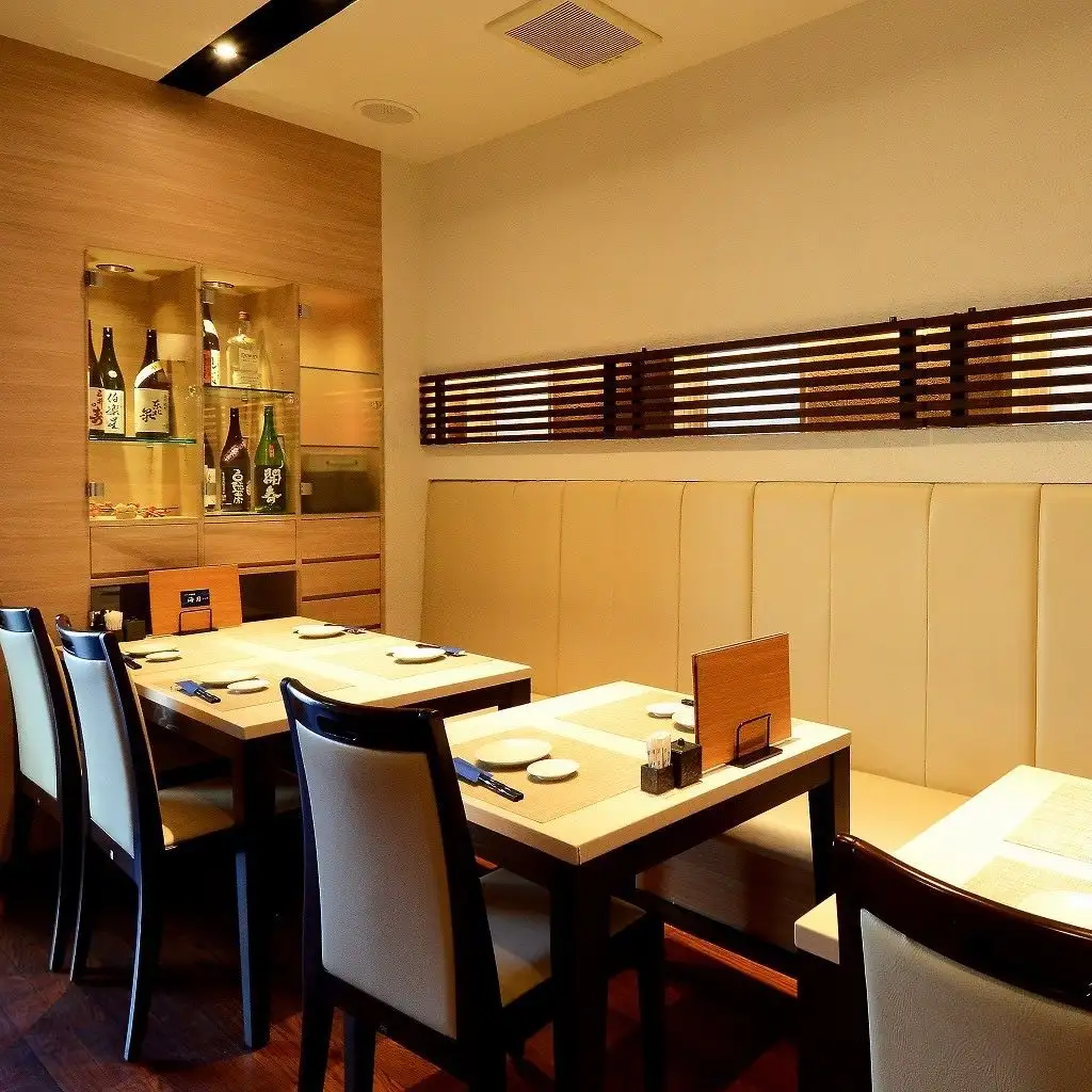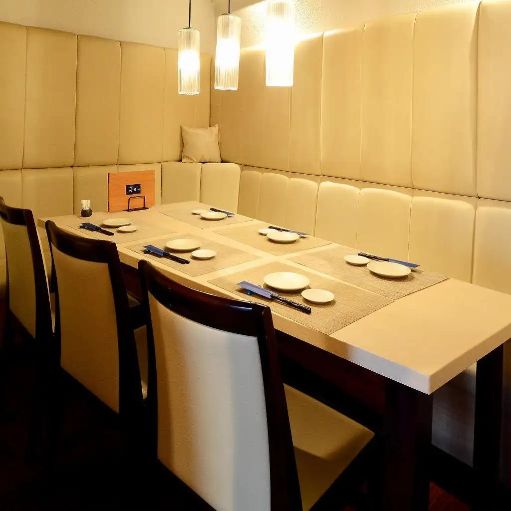 のれんで仕切られた半個室空間。7名様までご利用いただける空間です。白を基調として店内で大切な人とゆったりとお過ごしいただけます!